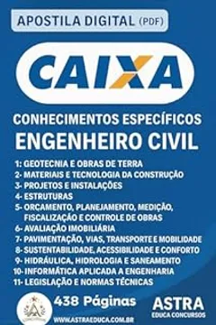 Baixe aqui um apanhado geral sobre o livro Apostila Concurso CAIXA - ENGENHEIRO CIVIL Astra Educa - Conhecimentos Específicos em PDF e distribua para quem você acha que gostaria de conhecer esta obra. O download está disponível para todos de forma gratuita.